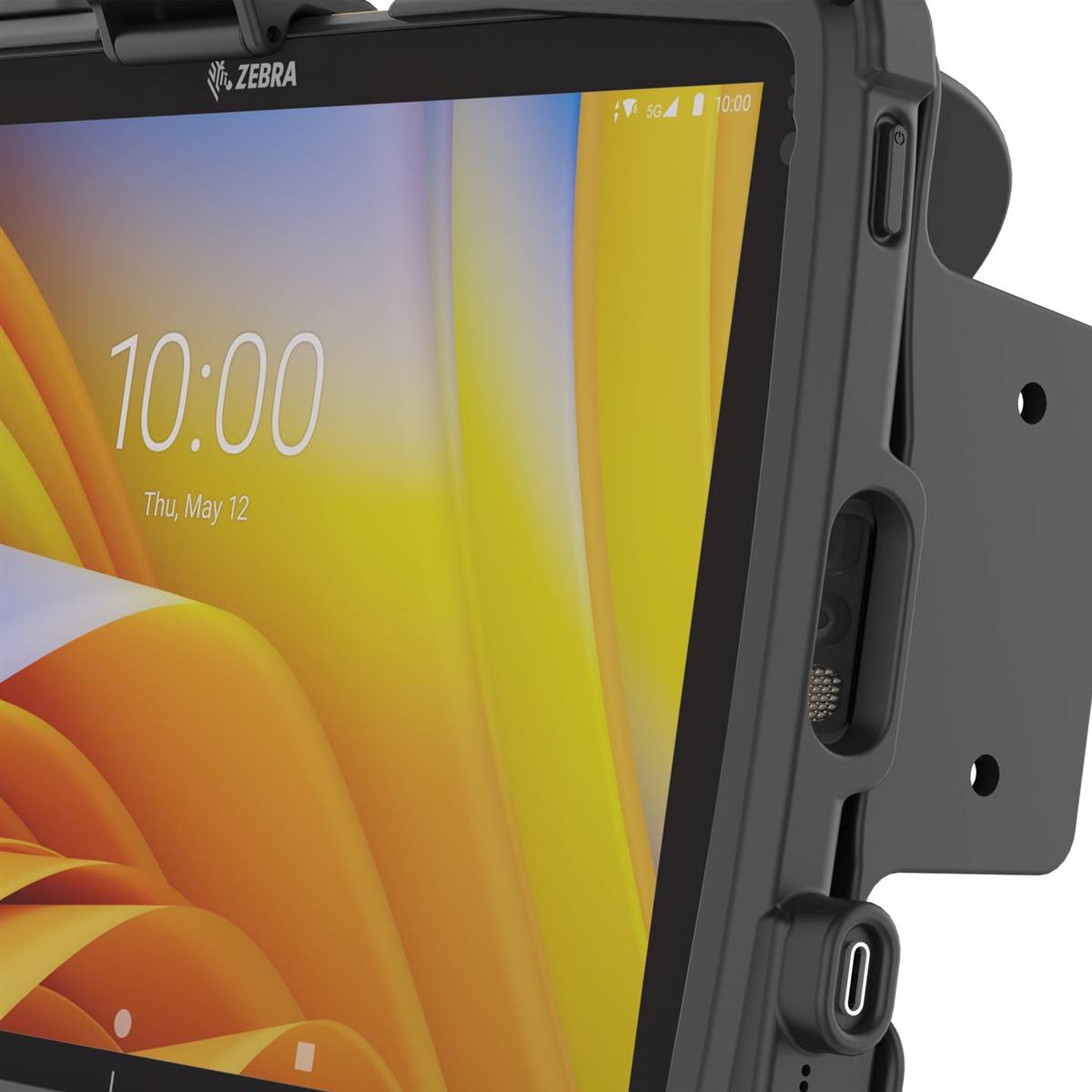 Featuring GDS Technology for data and charging capabilities, the GDS Vehicle Dock for Zebra ET40 & ET45 10" enterprise tablets with IntelliSkin Next Generation protective sleeve allows you to connect up to two desired peripherals while keeping the device charged through the pogo pin contacts when the device is docked. Power is provided by connecting to the dock's USB Type-C connector, while peripheral support is provided by the built-in dual USB Type A cable. The dock also allows the tablet's scanning function to work on the side, as well as tablet add-ons such as the Zebra Expansion Back and PowerPack Battery. This vehicle dock is compatible with C and D size RAM 4-hole AMPS and 75mm x 75mm VESA pattern bases for attaching a double socket arm in order to complete your mounting solution. Take the solution a step further by taking advantage of the built-in 2-hole mounting plate compatible with RAM 2-hole diamond base for additional device mounting such as a phone or other handheld device.